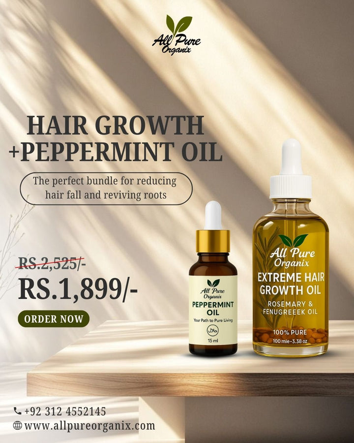 πΏ All Pure Organix Hair Growth & Peppermint Oil Combo β 100% Pure & Natural